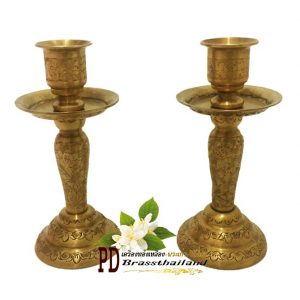 เชิงเทียนทองเหลืองตอกลายสูง 9 นิ้ว