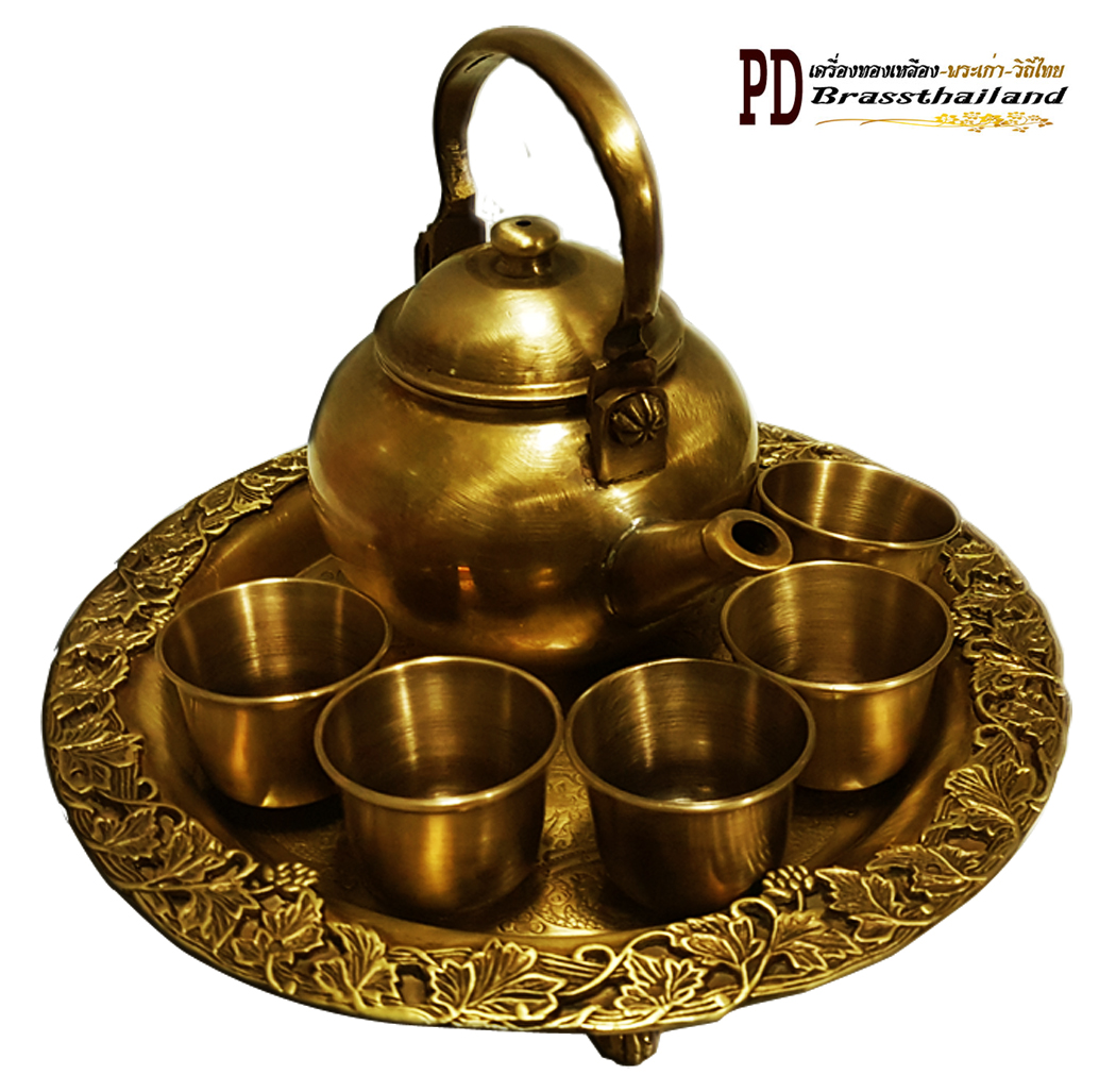 คุณสมบัติ: ชุดกาน้ำชา ถาดแกละลายองุ่น ทองเหลือง