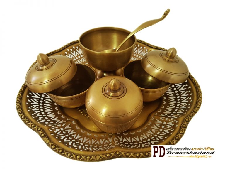 ชุดถวายข้าวพระทองเหลือง Set B. สวย งดงาม เป็นชุดเครื่องทองเหลืองโบราณภูมิปัญญาจากช่างศิลป์โบราณมีให้เลือกซื้อไปใช้งานมากมาย