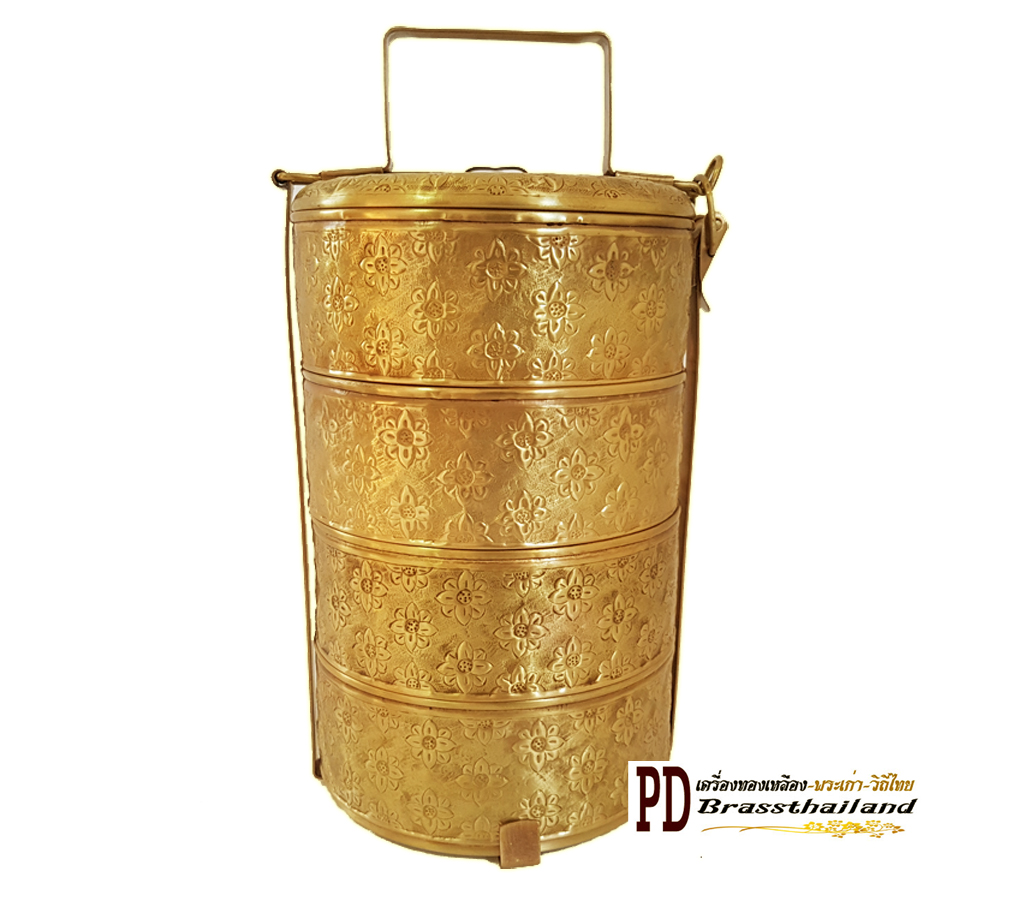 - ปิ่นโตทองเหลืองตอกลาย ดอกมะลิเล็ก ขนาด 4 ชั้น ราคา 5,200 บาท