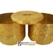 ชุดปิ่นโตทองเหลืองตอกลายดอกมะลิเล็ก สวยงามมีให้เลือกขนาด 3-4 ชั้น งานแกะสลักลายจากช่างฝีมือ ปิ่นโตแกะสลักลายที่ชัดเจน ใช้งานได้อเนกประสงค์ แข็งแรง ทนทาน ใส่อาหารคาวหวานได้ดี