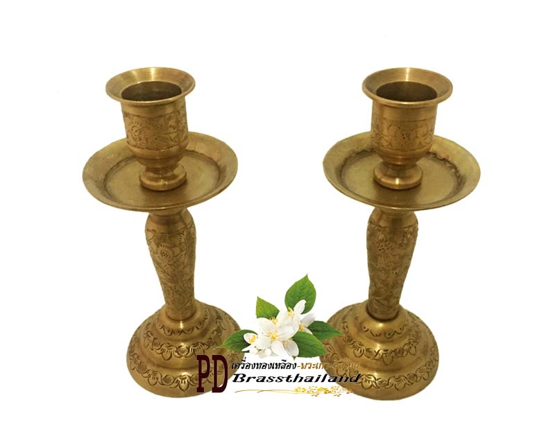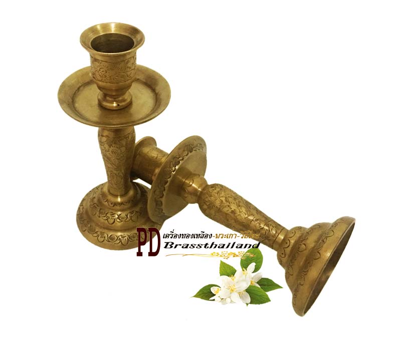 เลือกซื้อเชิงเทียนจานทองเหลืองตอกลายดอกมะลิไทย ในราคาสุดพิเศษ Tel.0611956464
