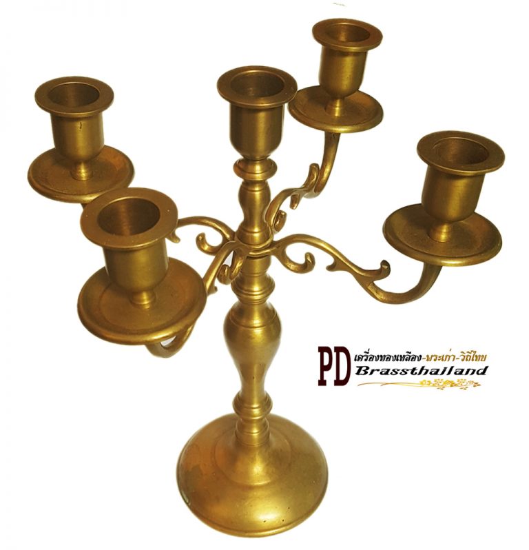 เชิงเทียนทองเหลือง 5 ช่อ 13.5″ นิ้ว ตกแต่งบ้าน ให้สวยงาม หรือ ใช้งานวาง เชิงเทียนทองเหลืองเพื่อจุดบูชาพระ หรือร่วมใช้งานกับโต๊ะหมู่บูชา ฯลฯ เชิงเทียนทองเหลืองโบราณราคาถูก ใช้งานได้ดีอเนกประสงค์