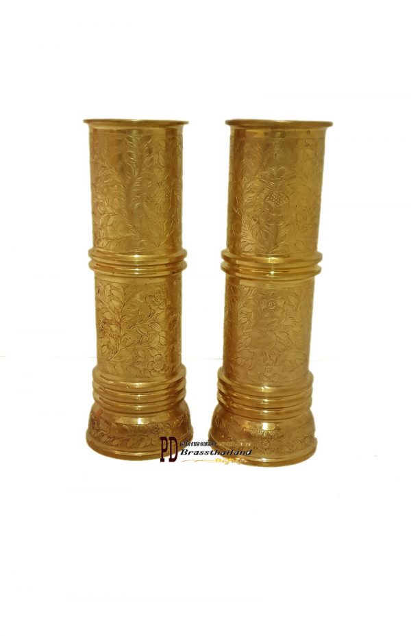 - แจกันทองเหลืองทรงต้นไผ่ตอกลาย ขนาด×ความสูง 8″ นิ้ว /คู่ 4590 บาท